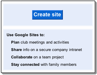 Let’s say I’m planning a wedding and I’d like to create a Google site as a centralized place for my guests to RSVP and gather all of the information they need. First, I need to create my site. I visit sites.google.com and click Create site.